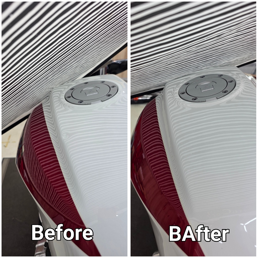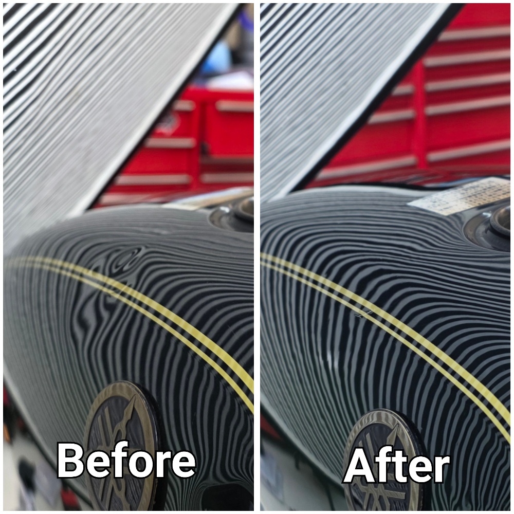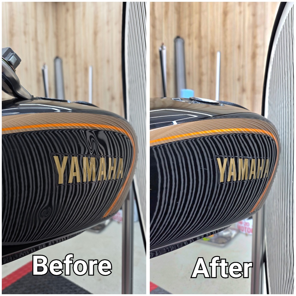 自動車の凹みを専門で行っていますが、ご依頼があった場合バイクタンクも施工させて頂いています。