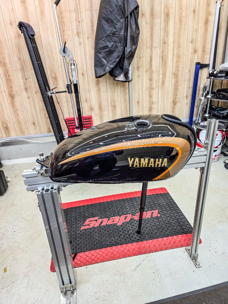 YAMAHA SR400 ブラックゴールト バイクタンク凹み 海老名でへこみ修理